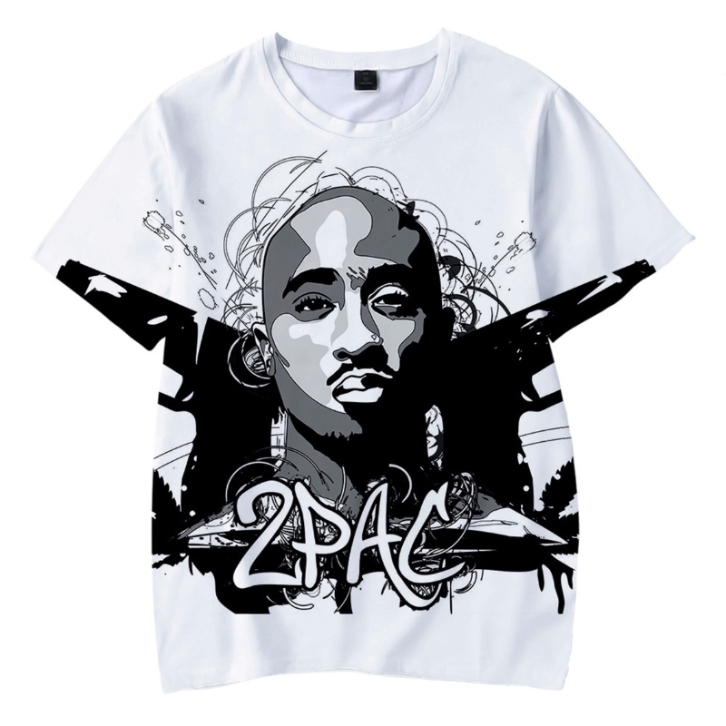 2Pac T-Shirts Männer Frauen 3D-Druck Kurzarm Rapper Tupac O-Ansatz Swag Hip Hop T-Shirt