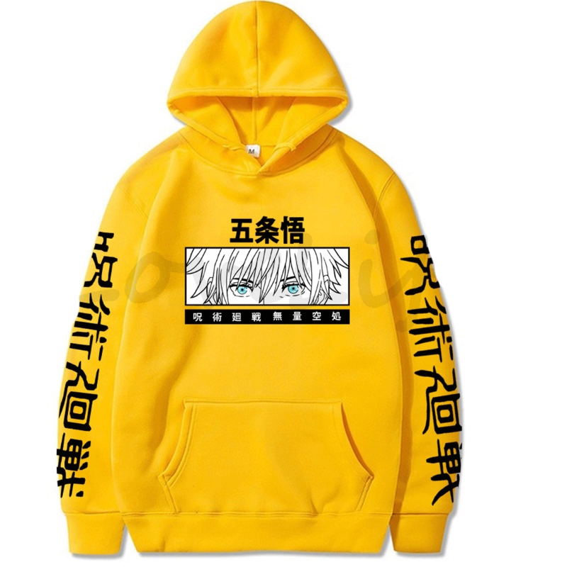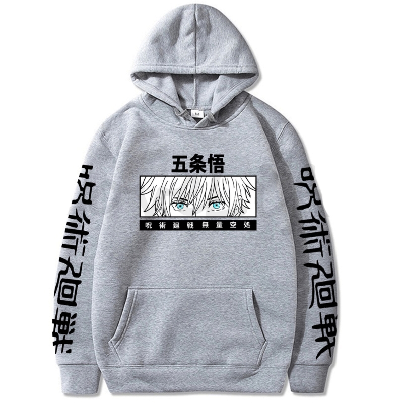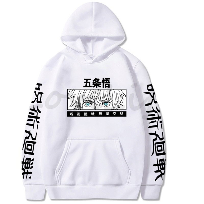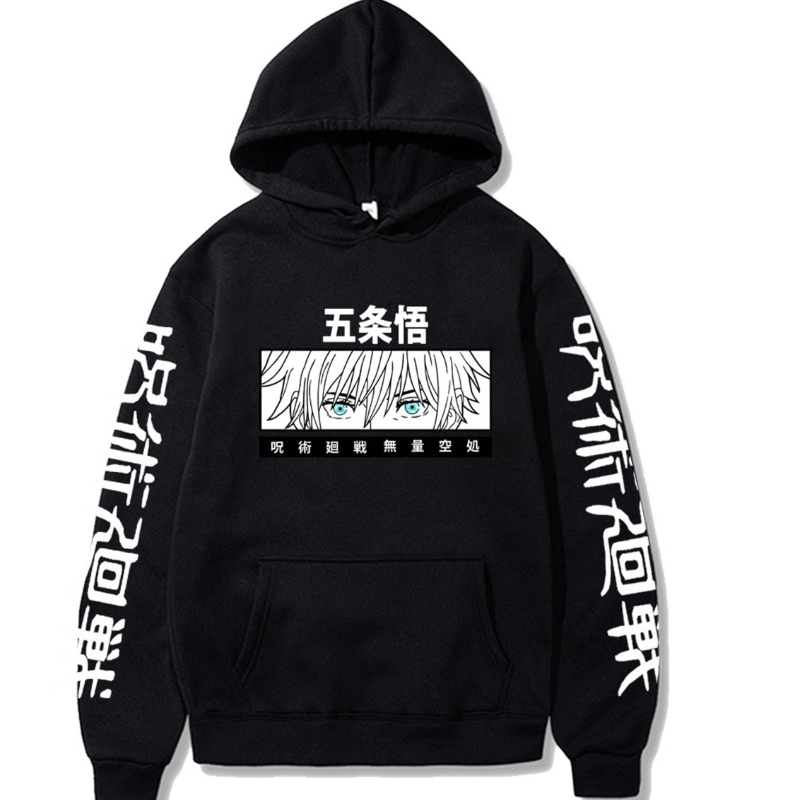 Fashion Japan Anime Jujutsu Kaisen Harajuku Hoodie Men Streetwear Kawaii Gojo Satoru Eyes Print Oversized Long Sleeve Sweatshirt