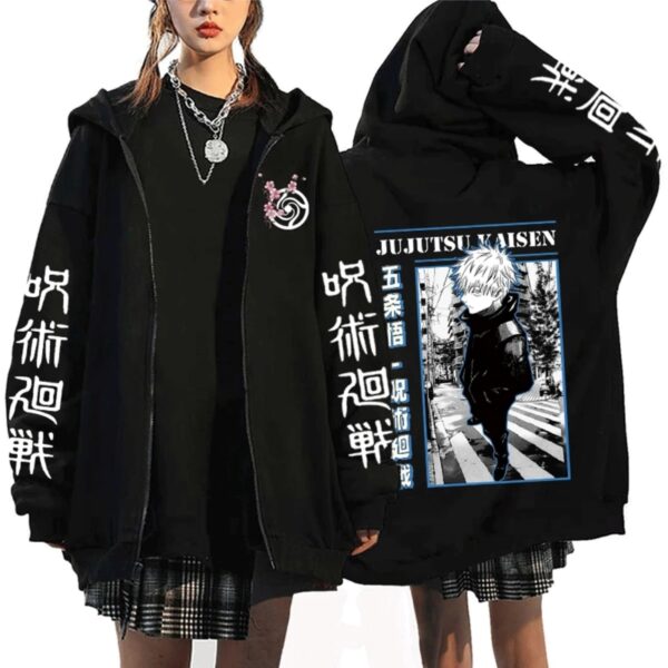 Harajuku Anime Jujutsu Kaisen Hoodie Men Satoru Gojo Printed Zip Up Sweatshirt Y2k Manga Tracksuits