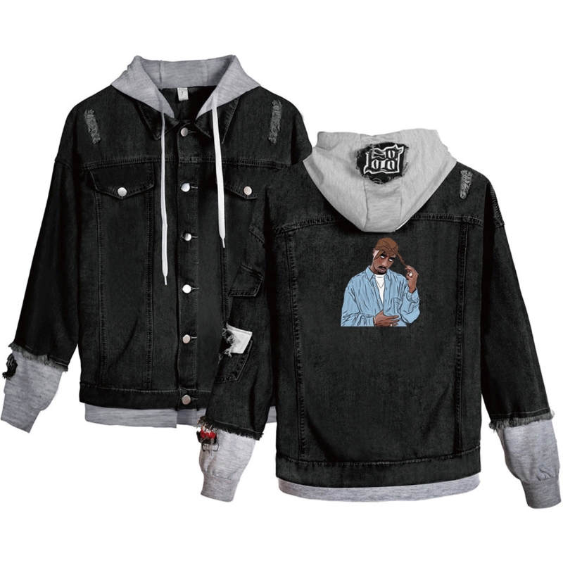 Männer Frauen Rapper 2pac Jeansjacke Tupac Amaru Shakur Kapuzen Outwear Cowboy Jeansjacke Mode
