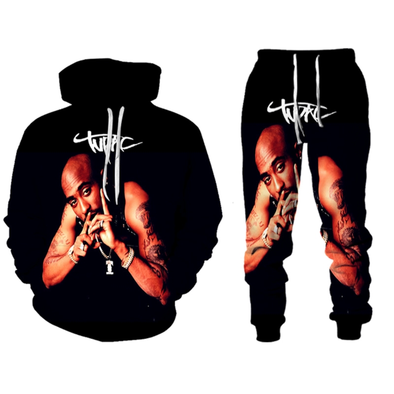 Rapper Harajuku Hoodie-Set Bedruckter Modepullover Hip Hop Tupac Warme schwarze Sportbekleidung