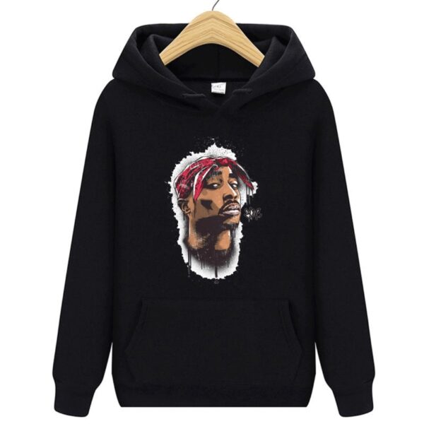 Rapper Harajuku Hoodie-Set Bedruckter Modepullover Hip Hop Tupac Warme schwarze Sportbekleidung